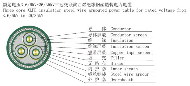 鋁芯交聯(lián)聚乙烯絕緣細(xì)鋼絲鎧裝聚乙烯護(hù)套電力電纜 |